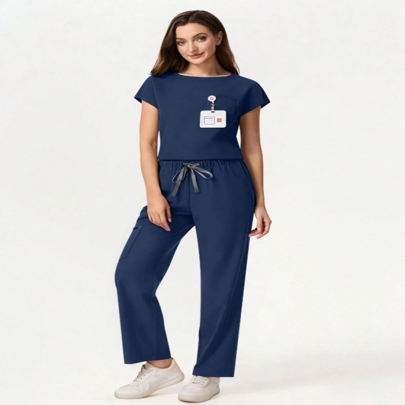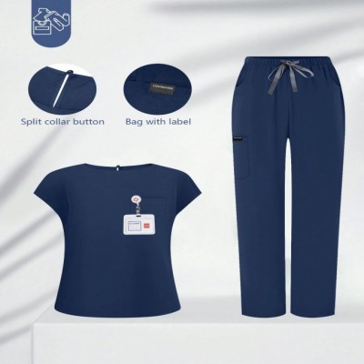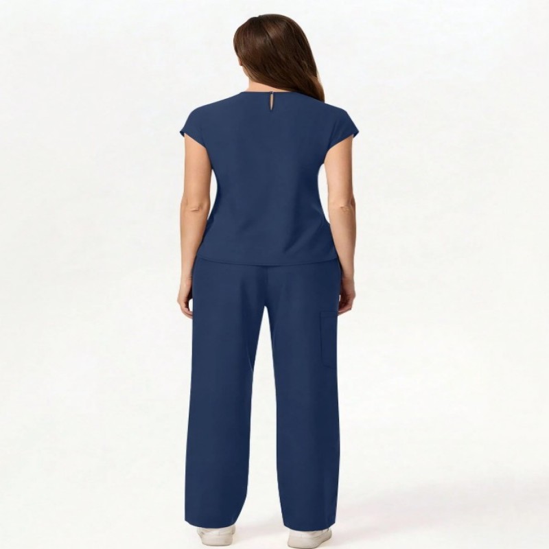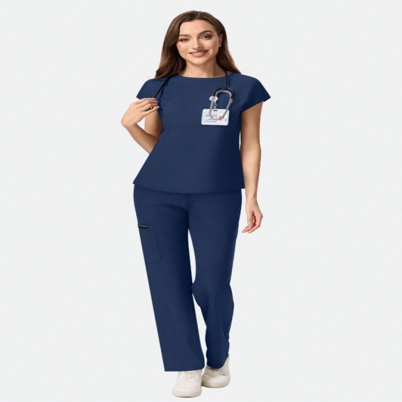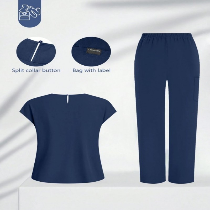 cimmuovere Conjunto de uniforme médico de mujer con top de manga corta de cuello en V de unicolor ajustado con múltiples bolsillos y pantalones con múltiples bolsillos, para enfermeras, dentistas, trabajadores de la salud, veterinarios y laboratorios