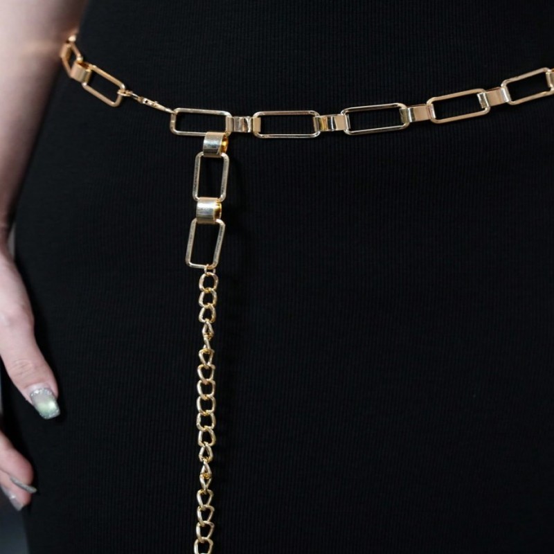 1 pieza Cadena de cintura de mujer versátil de rectángulo hueco dorado/plateado, cinturón de cintura de metal vintage adecuado para vestidos, uso diario