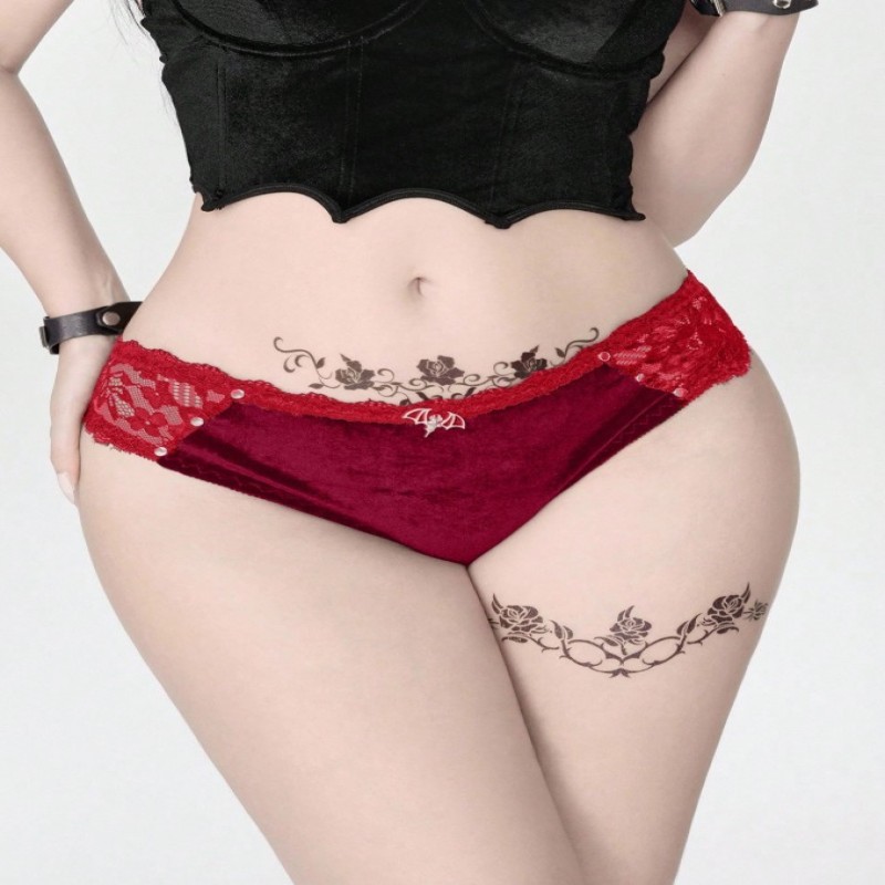 ROMWE Goth Pantis triangulares de terciopelo gótico con tachuelas y colgante de murciélago
