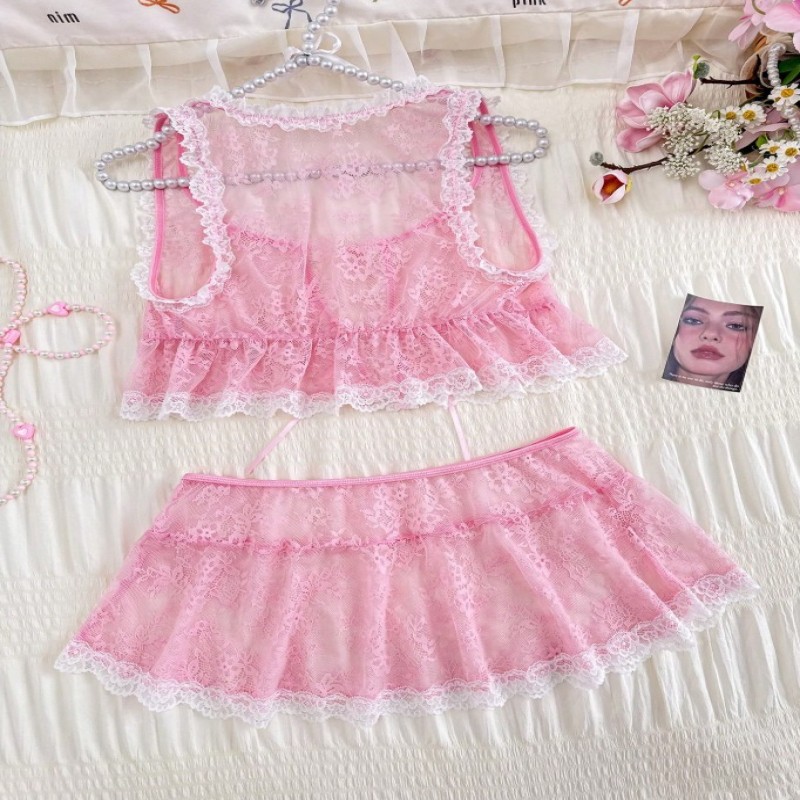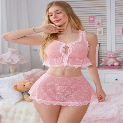 2 piezas Conjunto de lencería sexy con lazo de encaje para mujer