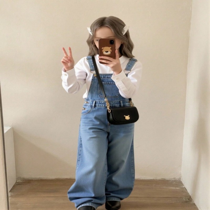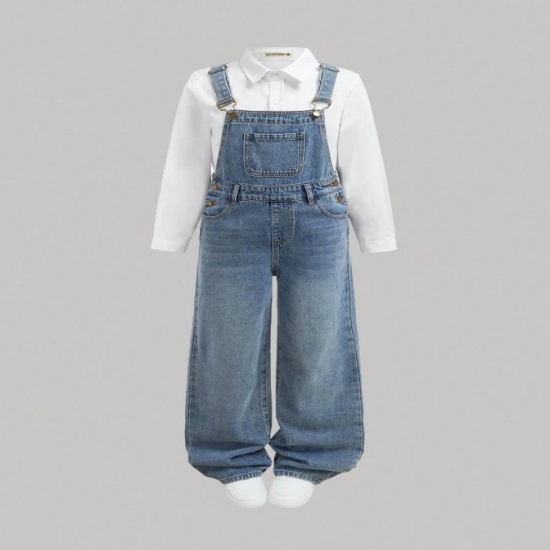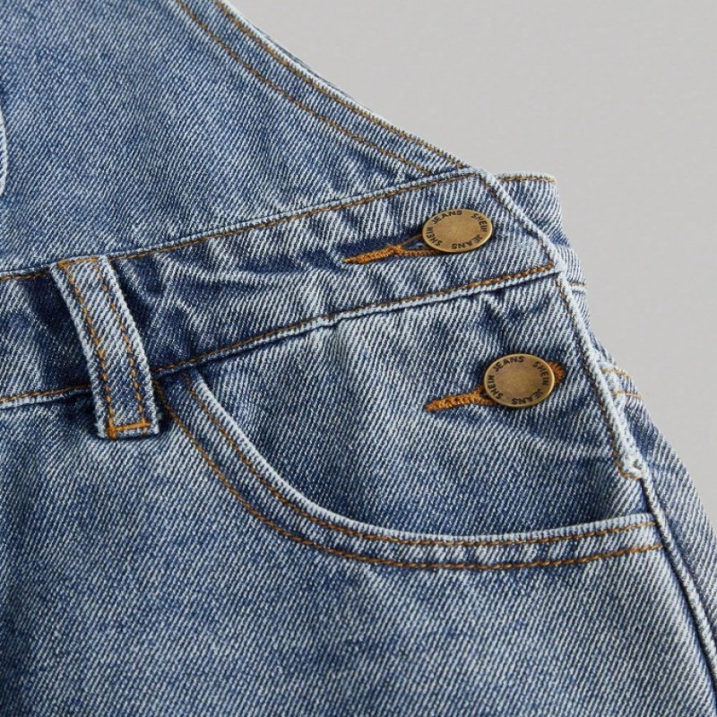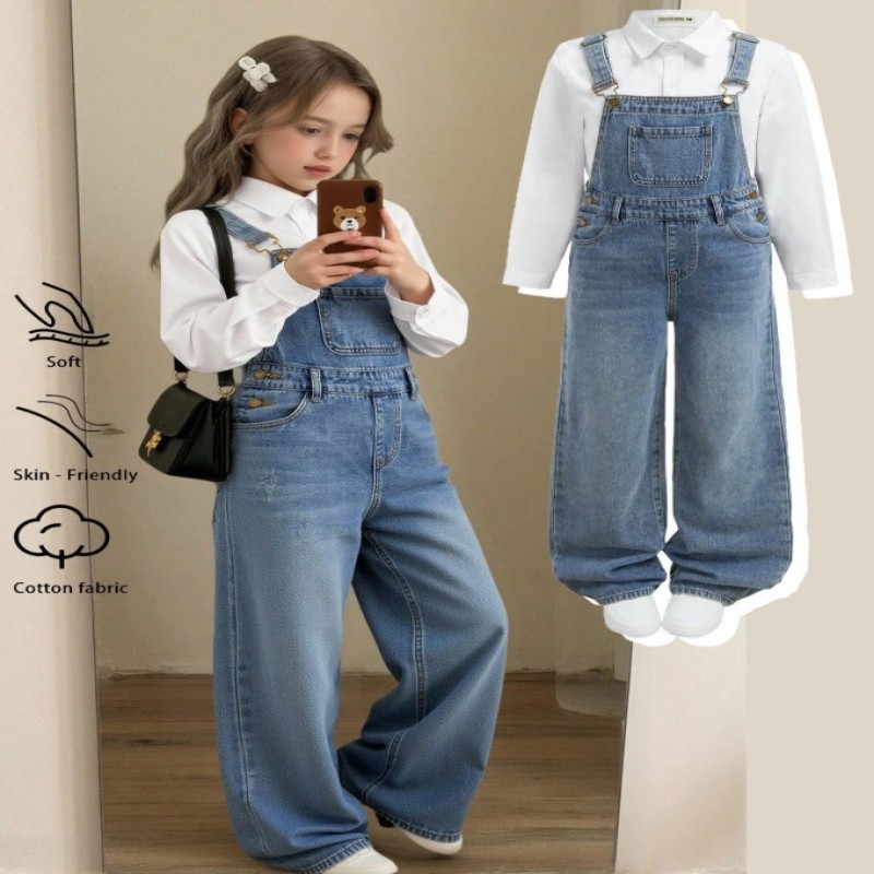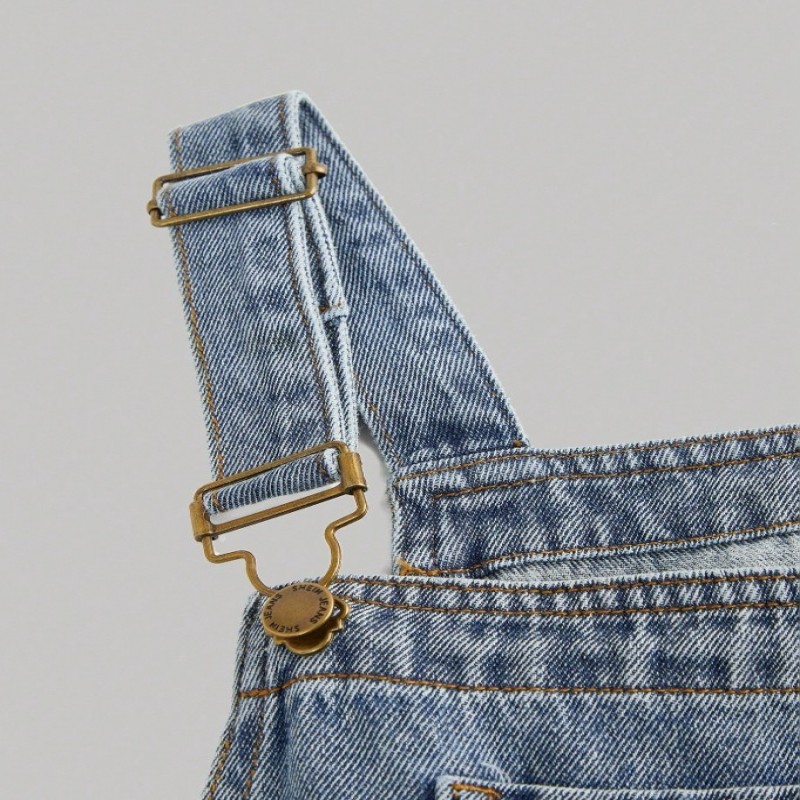 SHEIN Peto vaquero azul de corte holgado para niñas preadolescentes