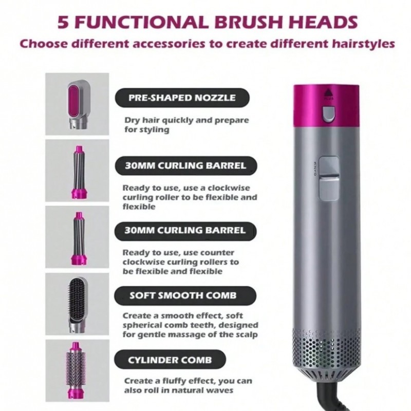 40568 Cepillo Secador De Pelo 5 Es 1 Para Peinado De Mujer Con Plancha Secadora Peinadora Aire caliente $ 40568 |
