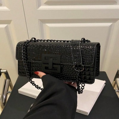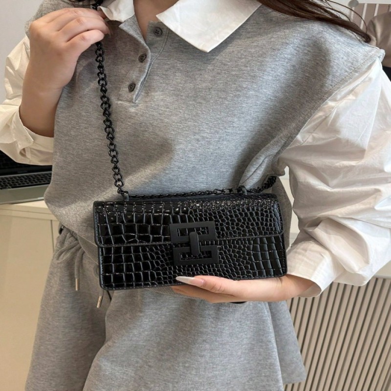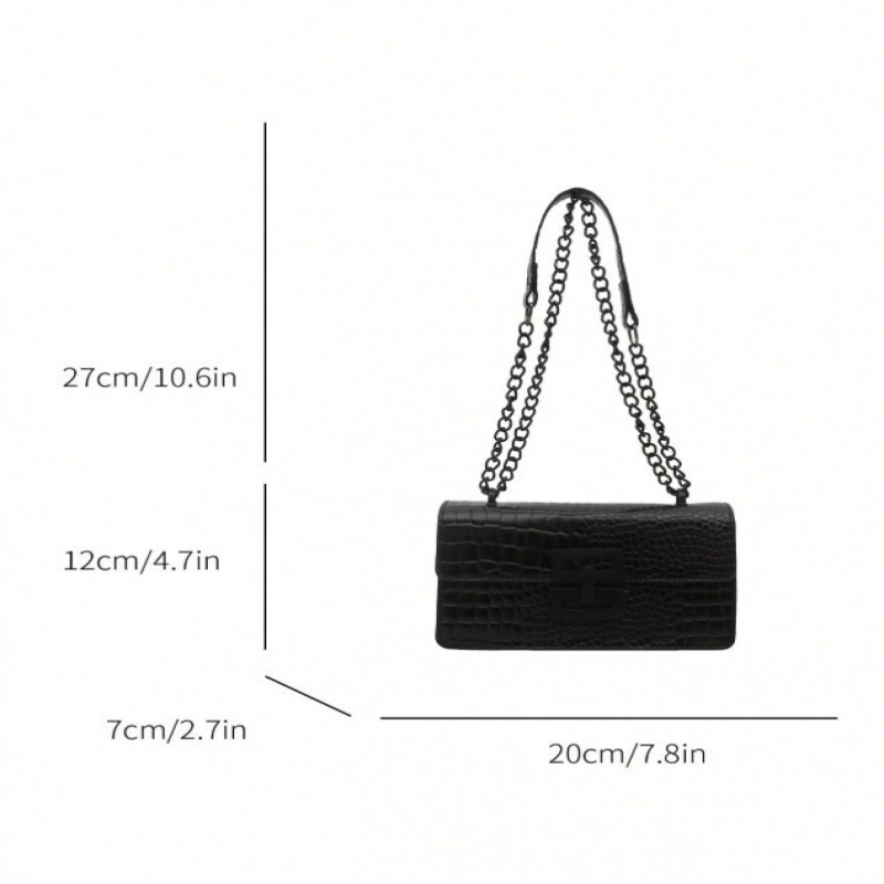 Bolso de hombro retro de moda mini para mujer, bolso cruzado ligero de cadena de metal PU, bolso cuadrado con cierre casual, bolso de caimán, bolso de compras para chicas jóvenes, adecuado para el transporte diario de la mujer
