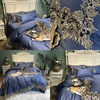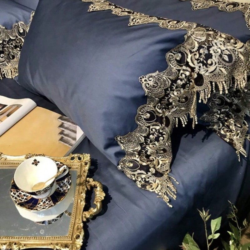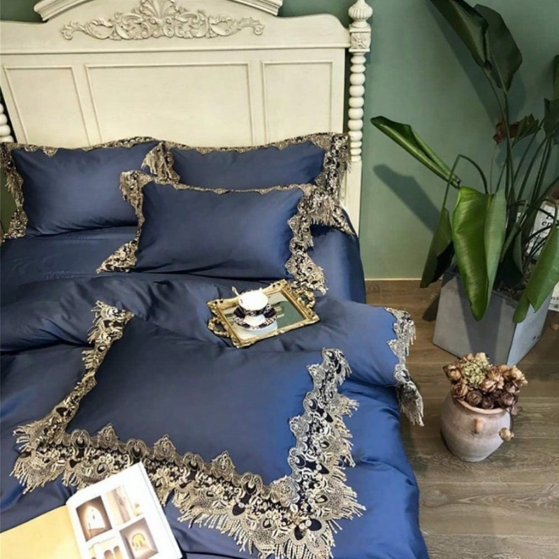 Duvet Cover Sets Double Duvet Covers Set Cotton 100 Bedding Set 4 Pieces 100% Egyptian Long Staple Cotton Duvet Covers Bedding Set Blue Include Quilt Cover 220 Times 240Cm +1 Flat Sheet 245 Times 270