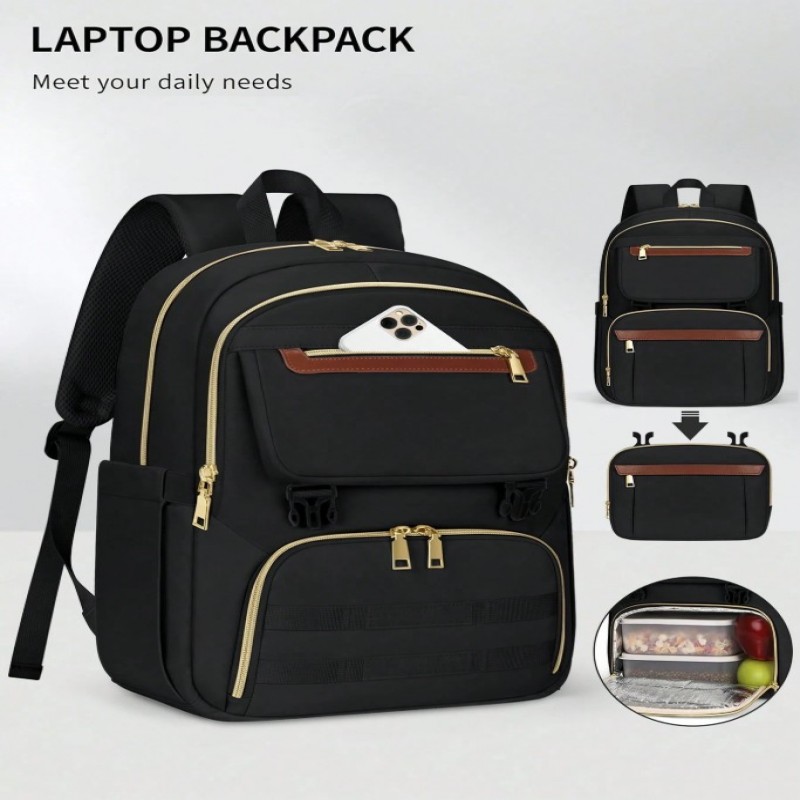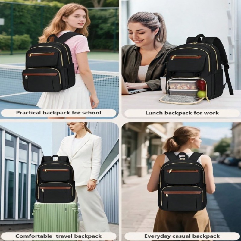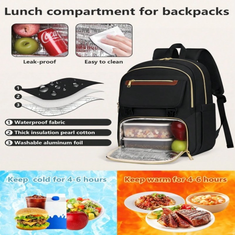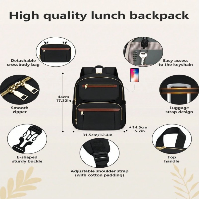 NEWHEY Mochila para el almuerzo para mujeres Mochila para portátil de 15.6 pulgadas con puerto USB Mochila de viaje con bolsa desmontable Mochila de trabajo con compartimento para el almuerzo Mochila para computadora resistente al agua para la universidad