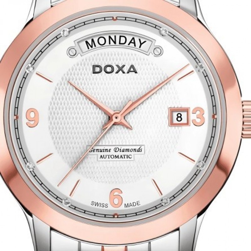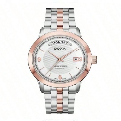 Reloj mecánico para hombres DOXA, esfera blanca, material de acero inoxidable, de negocios, adecuado para uso diario, reloj automático para hombres InterGold (acero inoxidable + chapado en oro rosa + chapado en color gris) esfera blanca (8 diamantes)